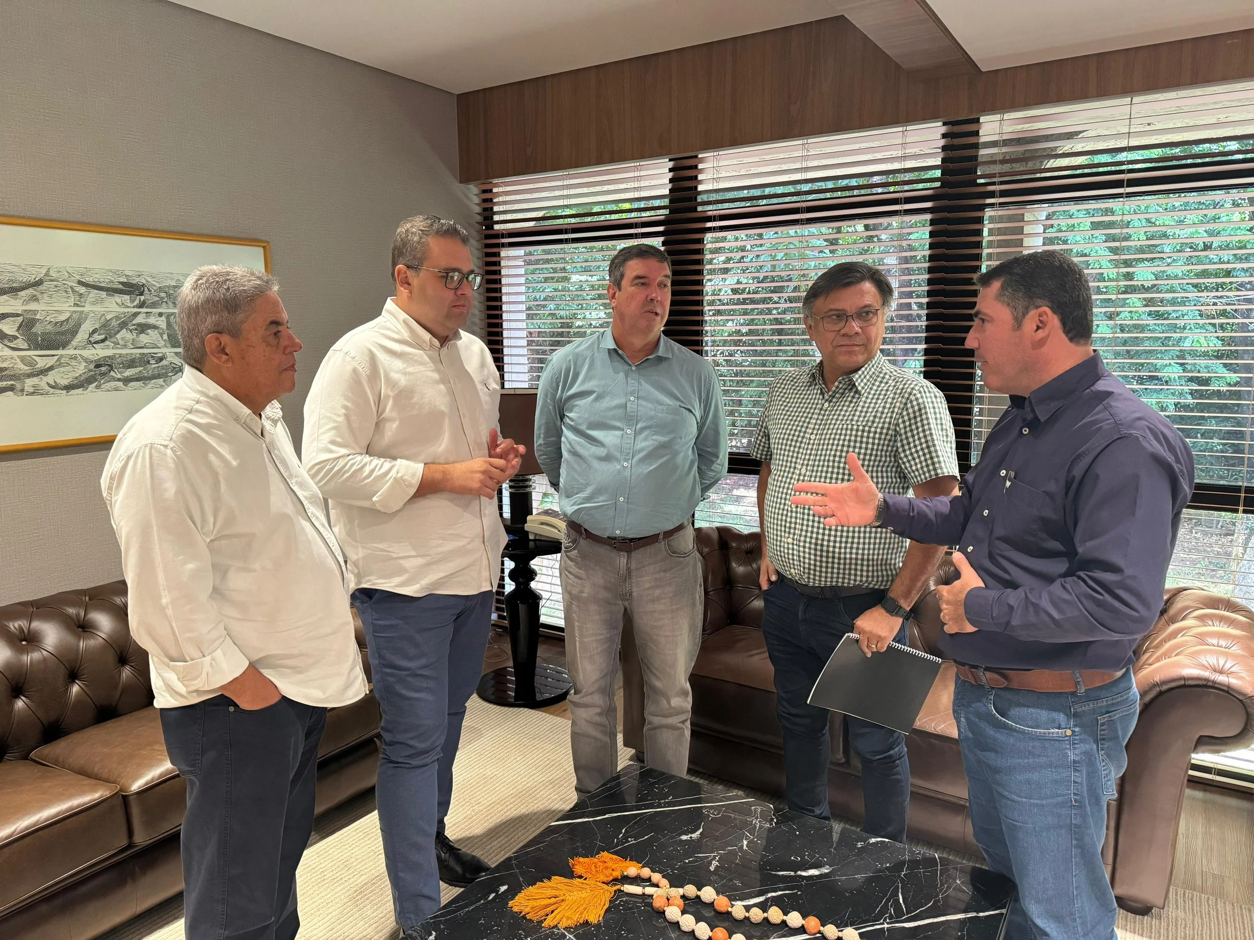 Em maio acontece a 58ª edição da Expoagro, a maior feira agropecuária de Mato Grosso do Sul, e, nesta quarta-feira (28), o governador do Estado, Eduardo Riedel, foi oficialmente convidado para a festa. O presidente do Sindicato Rural de Dourados, Angelo Ximenes, e o prefeito Alan Guedes foram os portadores do convite, em visita ao chefe do executivo estadual, no bloco da Governadoria, no Parque dos Poderes.